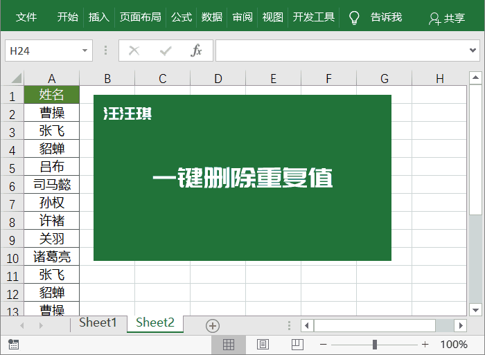 一键删除重复值