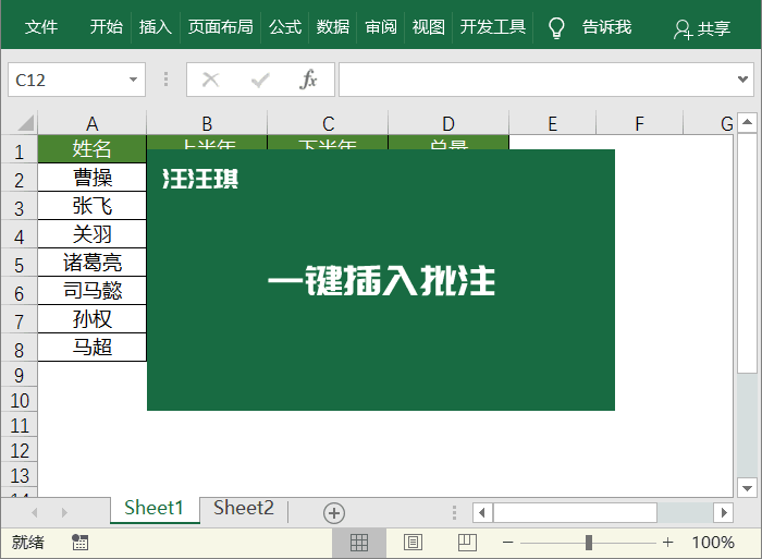 「Shift + F2」一键插入批注