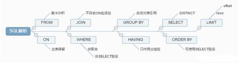 from <left table> on <on_condition> <join_type> join <join_table> where <where_condition> group by <group_by_list> <sum()avg()等聚合函数> having <having_condition> select <select_list> distinct order by <order_by_condition> limit <limit_number>