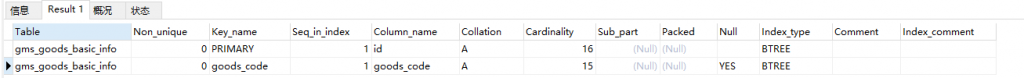 例如:show index from gms_goods_basic_info; 查询结果截图如下: